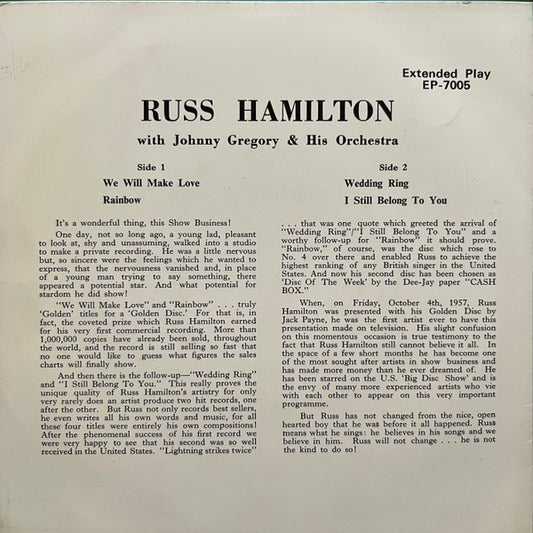 Russ Hamilton With John Gregory And His Orchestra - We Will Make Love