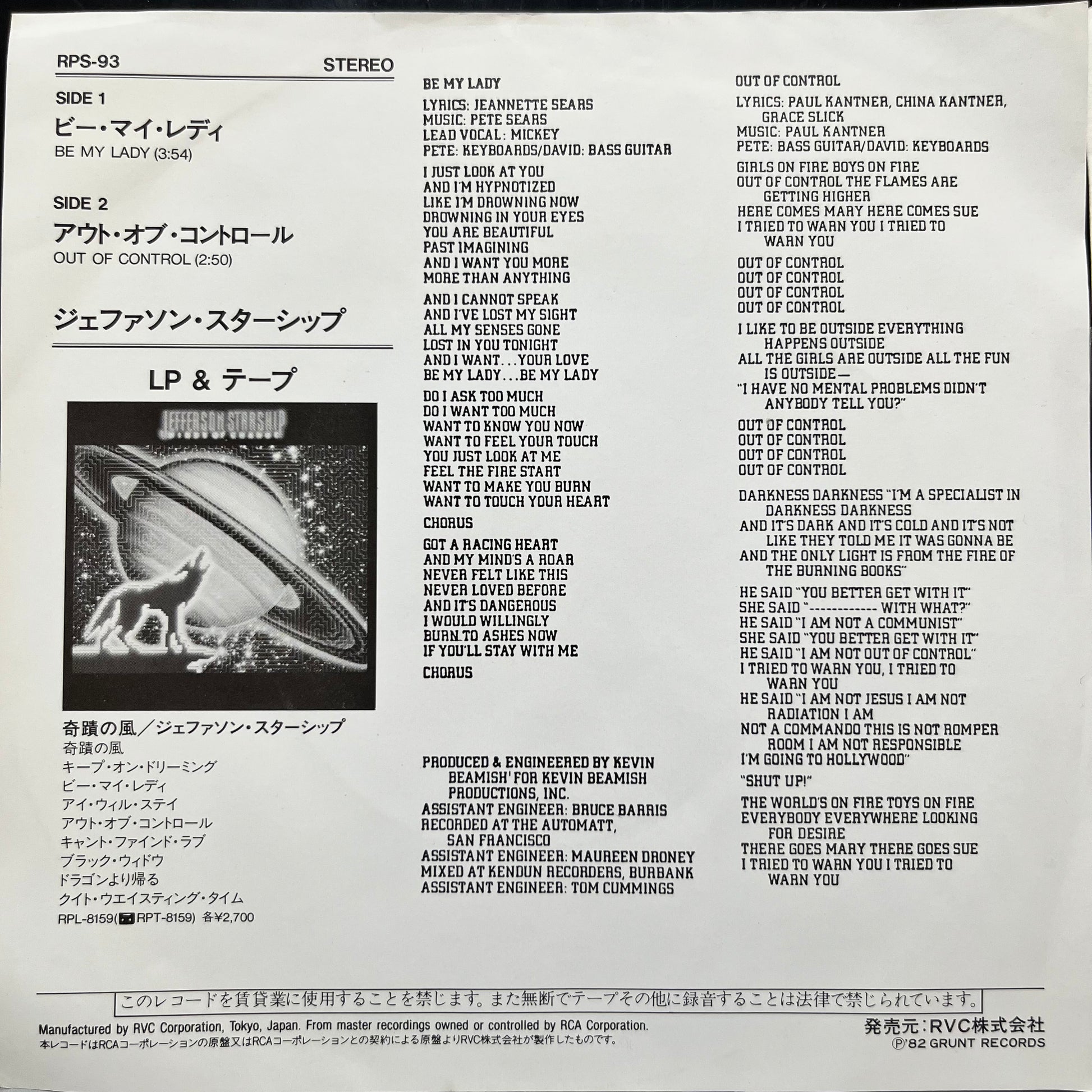 Jefferson Starship - Be My Lady / Out Of Control